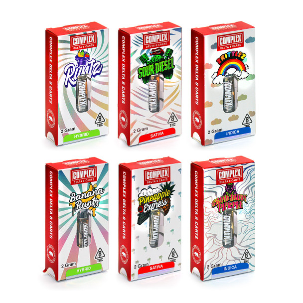 Complex Delta 8 Cartridge is a premium alternative products brand that offers a range of extraordinary vape products, including Delta 8 disposables and Delta 8 carts. The brand is parented by Cali Pods and headquartered in California. Each cartridge contains 2 grams of Delta 8 THC, plant-derived terpenes, and natural flavors. The product is derived from 100% legal USA Hemp and contains less than 0.3% Delta 9 THC in accordance with the 2018 Farm Bill. Complex Delta 8 Cartridge comes in seven flavors, including Pineapple Express, Runtz, Gorilla Glue, Grand Daddy Purple, Banana Runtz, Zkittlez, and Sour Diesel.
