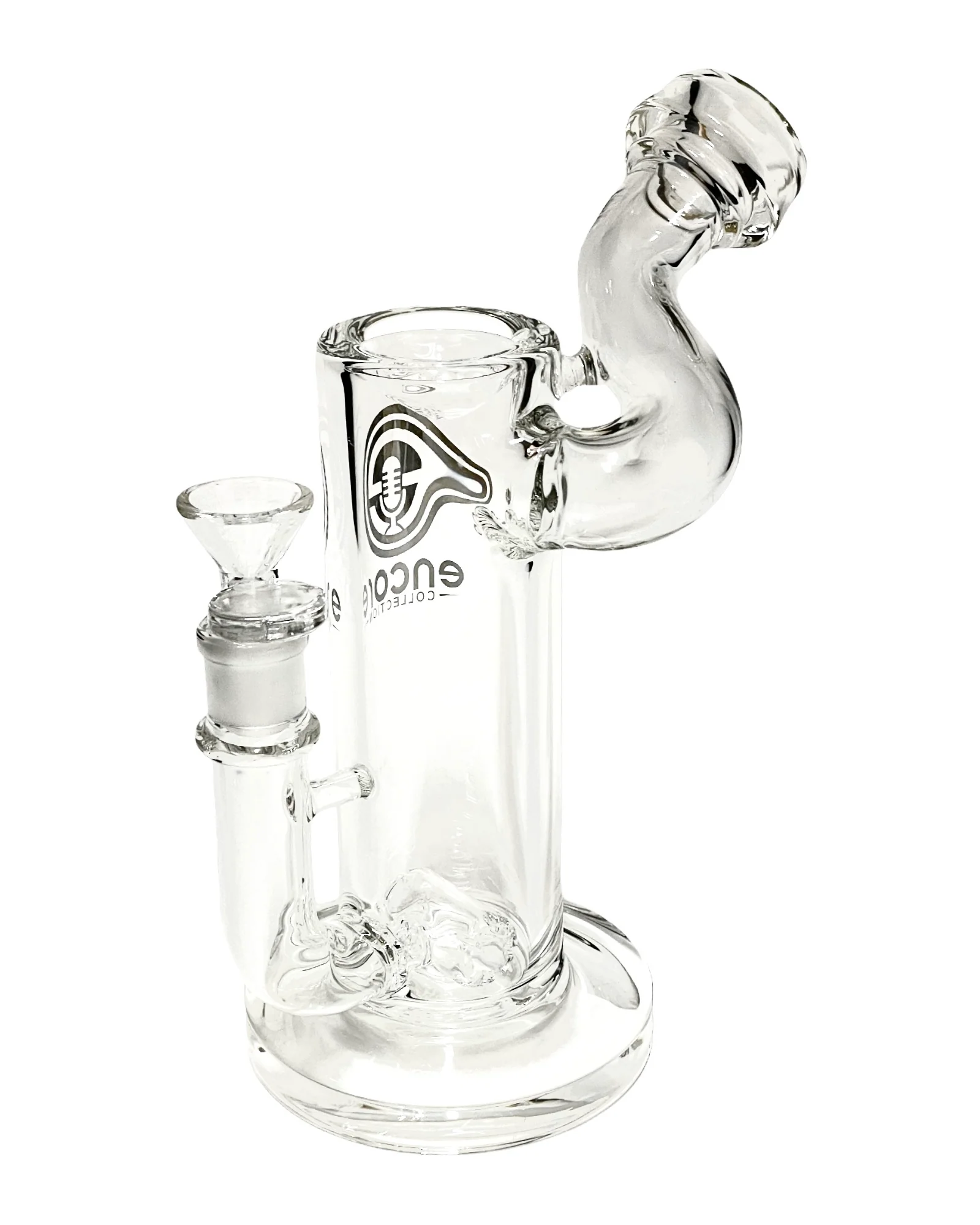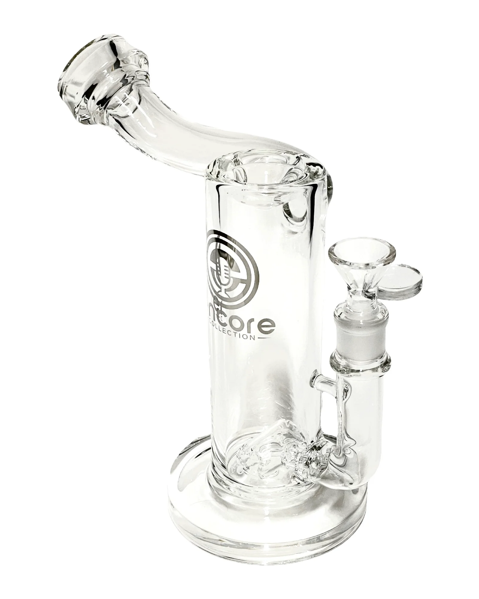 This Encore Curved Neck Bong rips big and features a distinctive curved neck. The entire piece is constructed of thick borosilicate glass. At the base of the main chamber is a barrel perc, which helps create clean hits. With this unique piece of glass, every smoke sesh will be clean and enjoyable!