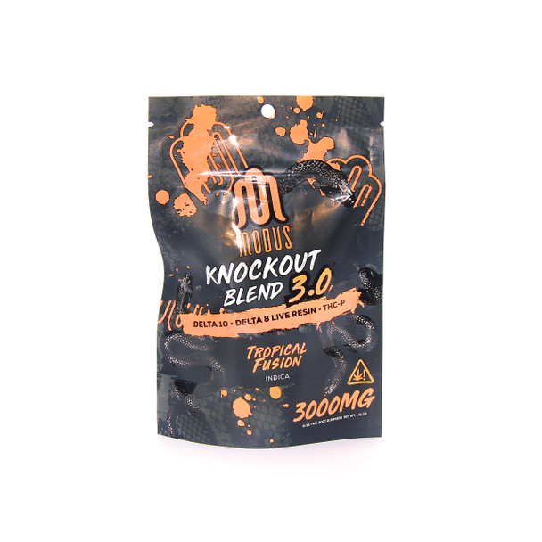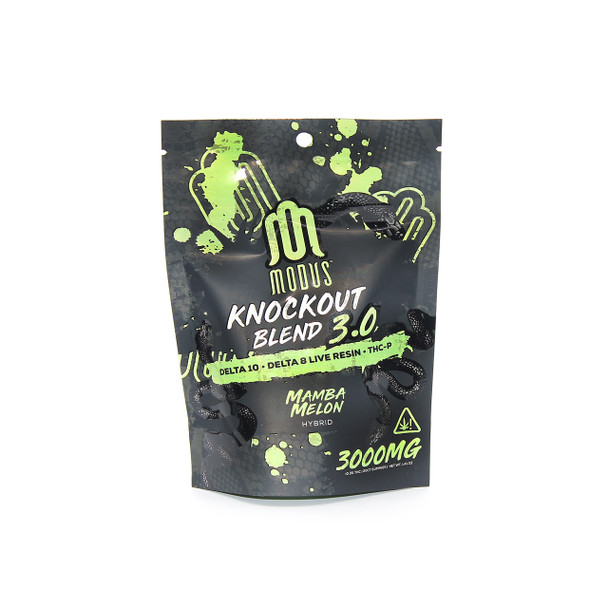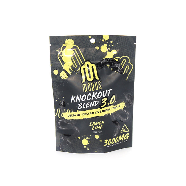 Modus has decided to raise the bar with the Knockout Blend 3.0 Gummies, this time around they really pack a punch as each gummy contains 150mg of Delta-10 + Delta-8 Live Resin + THC-P. Each bag comes with 20 gummies. We suggest taking 1/2 of a gummy to establish your individual tolerance. These gummies are derived from 100% USA grown hemp and are federally legal under the 2018 Farm Bill Act.