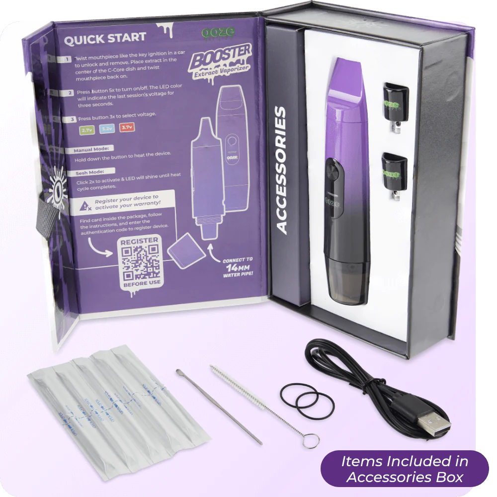 The Booster was designed with versatility in mind, and we packed a whole lot of punch into this portable two-in-one vaporizer device. At the heart of the Booster is the C-Core Onyx Atomizer. This provides insanely potent, smooth airflow, maximum flavor production, and more even heating throughout your session. It also ensures the vapor you inhale is 100% heavy metal free.