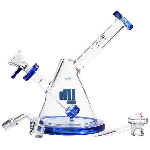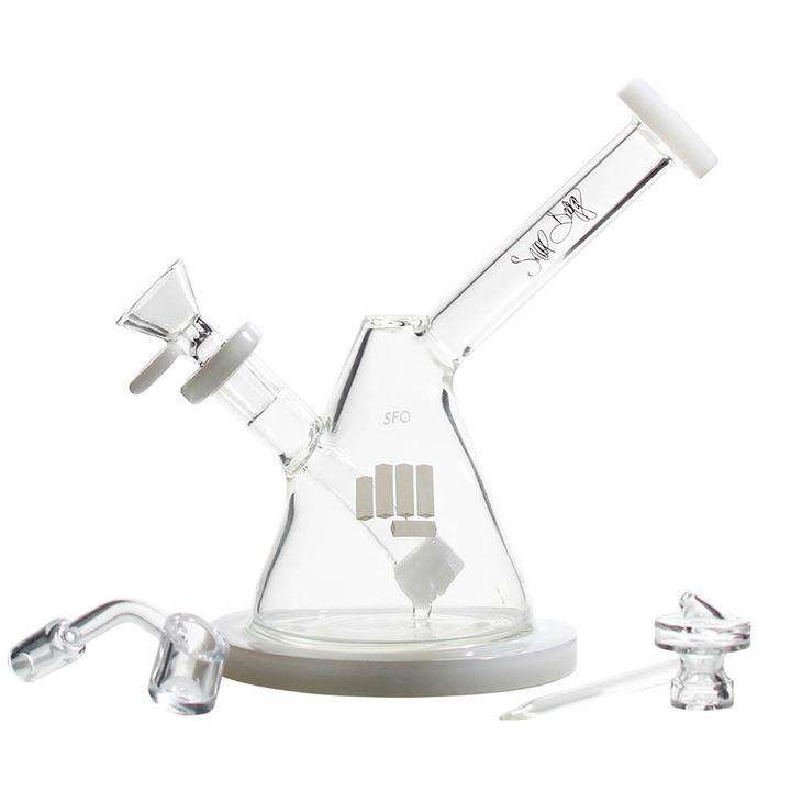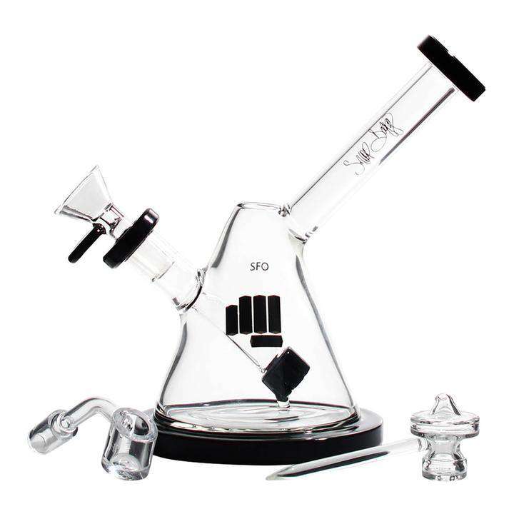 Californicated and highly medicated. This 7.5” water pipe for herb and concentrates features a technical pyramid body, with inline ruffle percolator and wide base. Elevate! Includes SFO display box, 14mm male herb bowl, and dab kit (carb cap, banger and tool).