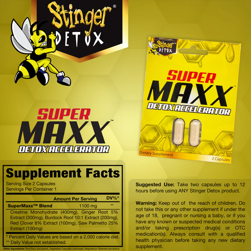 SuperMAXX – Directions for Use: Take two (2) capsules up to 12 hours before using ANY Stinger product.