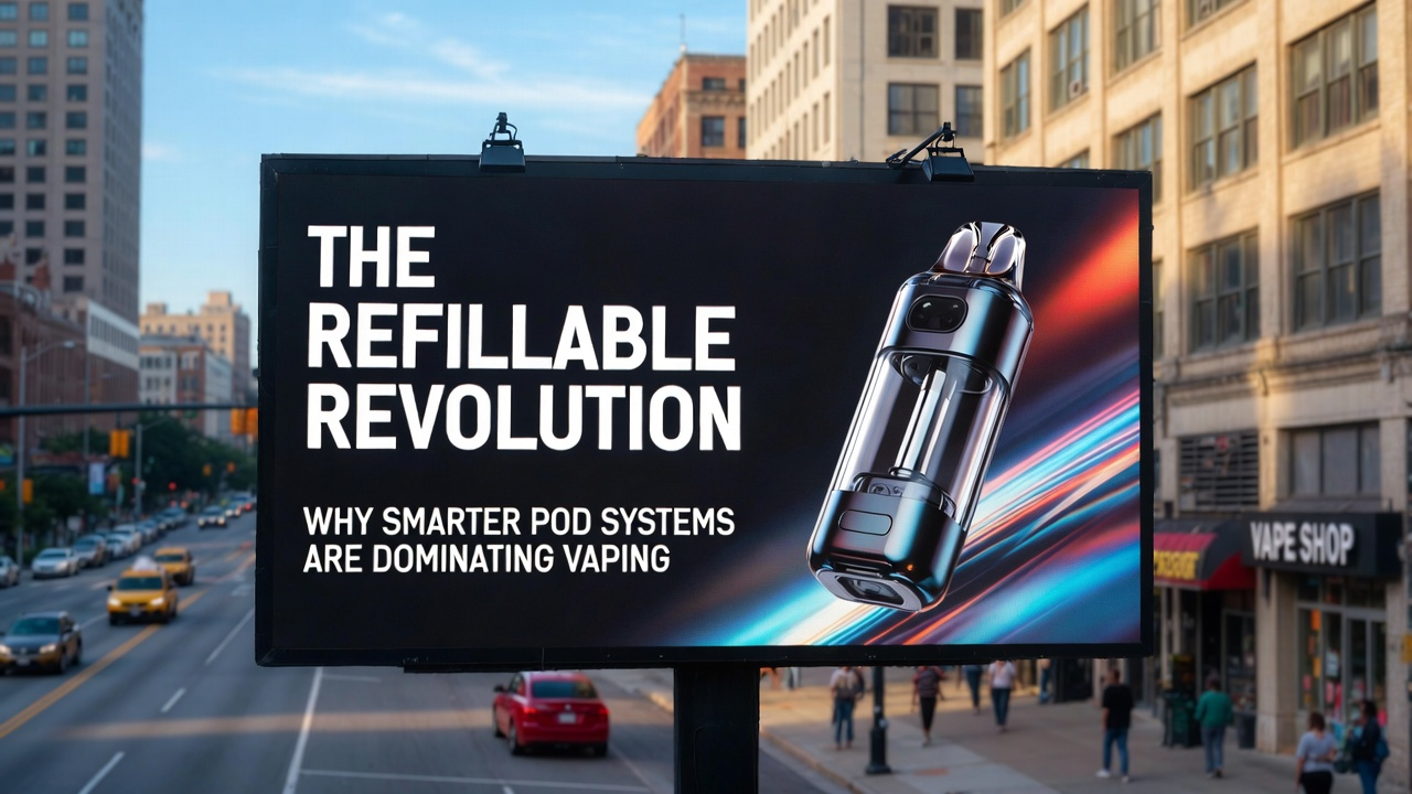 What is the main advantage of refillable pod systems over disposables in 2026?